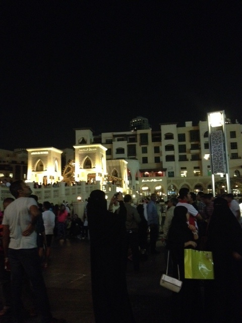 We first went to the Dubai Mall at night to suss out the price of some camera gear and also see the outdoor light show. Last time we watched this Pete dropped his phone into the harbour, no such thing this time!